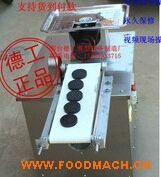 工作時將面加入面斗,經(jīng)螺旋推進器(輸面絞龍)將面推至分面器,經(jīng)成型模滾壓成型。