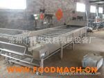 棒棒冰清洗殺菌機(jī)采用優(yōu)質(zhì)SUS304不銹鋼,溫度、速度可根據(jù)工藝要求設(shè)定,該機(jī)運(yùn)行平穩(wěn),不銹鋼帶強(qiáng)度高伸縮性小,不易變形,易保養(yǎng),操作機(jī)維護(hù)方便等特點(diǎn),與目前土法(殺菌池)相比勞動(dòng)強(qiáng)度低,人力少,自控化程度高,溫度可在98℃內(nèi)自動(dòng)調(diào)控,上下層水溫差較小,產(chǎn)品質(zhì)量容易控制,是蔬菜食品加工行業(yè)的理想設(shè)備。在食品、飲料、制藥等行業(yè)中,要求對(duì)一些包裝完畢的產(chǎn)品進(jìn)行水浴滅菌。被包裝好的產(chǎn)品放在可調(diào)速的不銹鋼網(wǎng)帶上,在傳送帶的作用下按序進(jìn)入滅菌箱體內(nèi),經(jīng)由“高溫水為介質(zhì)”殺菌后,再由傳送帶帶入冷卻箱體內(nèi)均勻冷卻,從而達(dá)到產(chǎn)品殺菌要求。 全鏈?zhǔn)阶詣?dòng)殺菌機(jī)具有國(guó)際90年代技術(shù)水平,是國(guó)內(nèi)首創(chuàng)的殺菌(M)、冷卻(L)、干燥(G)連續(xù)巴氏滅菌生產(chǎn)機(jī)組。適用于真空軟包裝食品、低溫肉食制品、火腿腸、香腸、果品、果蔬汁飲料、醬腌菜、醬菜、鹽漬菜、泡菜、榨菜、山野菜、果醬、豆制品等真空軟包裝食品的滅菌。該機(jī)還適用于果蔬的漂燙或予煮等工序。處理能力:450kg/h 800kg/h 1200kg/h 熱水溫度:max 100℃ 滅菌槽尺寸:3×1.2×0.5(M)4×1.2×0.5(M) 5×1.2×0.5(M) 滅菌時(shí)間:9—40min 9—40min 9—40min 總功率: ≤5.5kw ≤7.5kw ≤7.5kw 蒸汽耗量:300kg/h 500kg/h 800kg/h 外型尺寸:7×1.7×2.4(M) 9×1.7×2.4(M) 10×1.7×2.4(M)