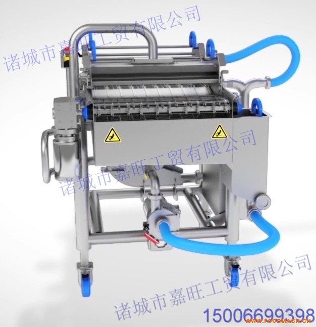 掛漿機(jī)采用快裝設(shè)計(jì),清洗方便;漿液輸送泵對(duì)漿液輸送粘貼小,對(duì)漿液的粘度破壞程度。徽{(diào)整方便可靠;瀑布式淋漿可以保持產(chǎn)品的整齊排序充分裹漿;具有可靠的安全防護(hù)裝置;可以與成型機(jī)、上面包屑機(jī)、油炸機(jī)等對(duì)接使用,從而實(shí)現(xiàn)連續(xù)生產(chǎn);整機(jī)采用不銹鋼制造,設(shè)計(jì)新穎、結(jié)構(gòu)合理、性能可靠。
