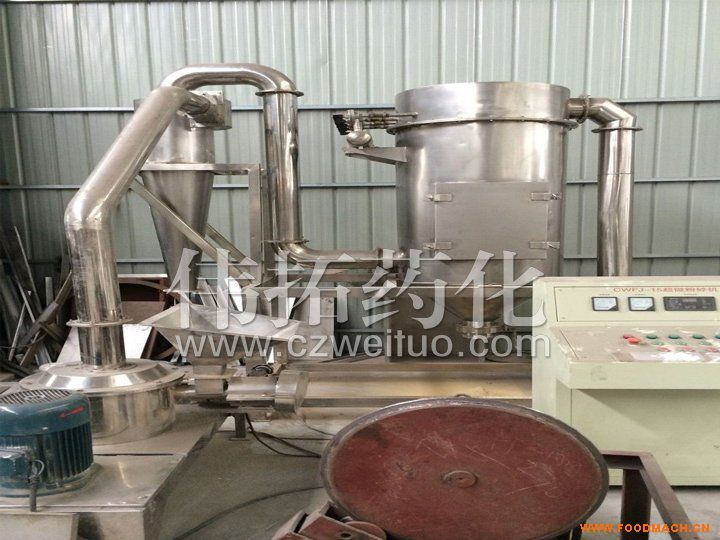 本機由主機、輔機、電控箱三部分組成,具有風(fēng)選式,無篩網(wǎng),粒度均勻等多種性能,生產(chǎn)過程連續(xù)進行,適用于制藥、化工、食品等行業(yè)脆性物料的粉碎。