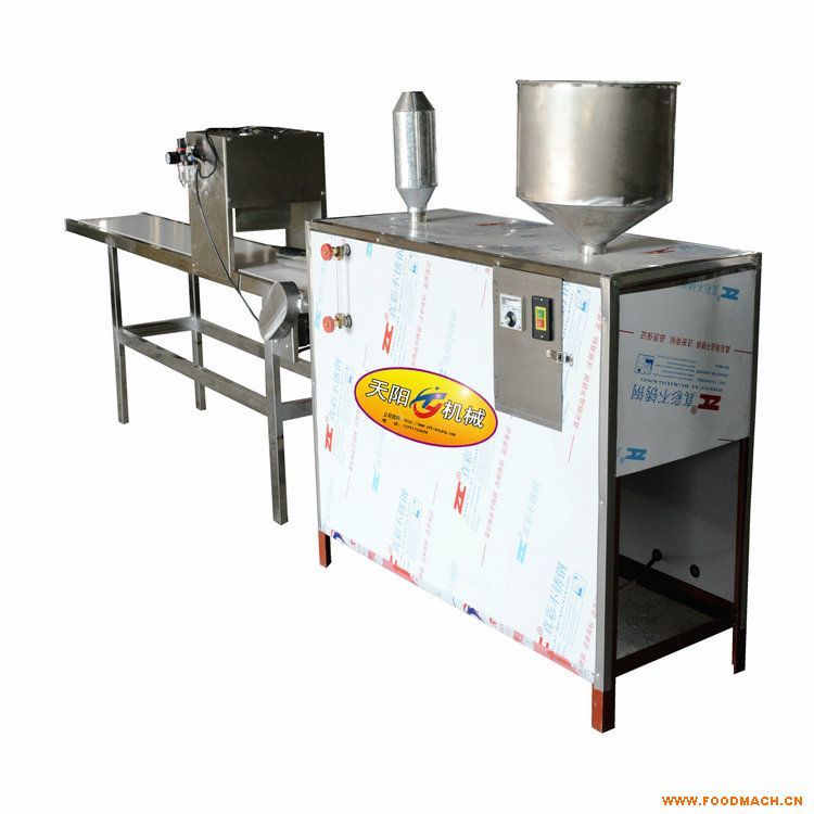天陽全自動年糕機(jī)為機(jī)電一體設(shè)計(jì),采用自動控溫電加熱裝置,儀表監(jiān)控,通過水浴煮漿熟化成型,這一過程均在恒溫狀態(tài)下運(yùn)行,它采用螺旋攪龍使熟化的米漿旋轉(zhuǎn)揉壓代替?zhèn)鹘y(tǒng)手工搡搗過程,連續(xù)進(jìn)料連續(xù)出糕,全封閉生產(chǎn),出機(jī)即熟,變換模具可生產(chǎn)不同的形狀,做出的年糕口感細(xì)膩爽滑,富有彈性,年糕出機(jī)成型后由調(diào)速皮帶同步傳送,數(shù)字延時(shí)切段,長短隨意可調(diào),生產(chǎn)過程無煙塵、廢水排放,生態(tài)環(huán)保,符合食品衛(wèi)生要求,解決了手工制作年糕工序復(fù)雜、費(fèi)時(shí)費(fèi)力的缺點(diǎn)。
