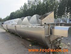 用于肉雞或鴨酮體分割前的冷卻工作,以達(dá)到脫酸,排毒的目的,螺旋推進(jìn)系統(tǒng)及鼓風(fēng)系統(tǒng)使肉雞酮體的冷卻更加均勻、徹底,預(yù)冷時(shí)間可根據(jù)客戶要求設(shè)計(jì)制作