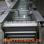 在食品、飲料、制藥等行業(yè)中,要求對(duì)一些包裝完畢的產(chǎn)品進(jìn)行水浴滅菌。被包裝好的產(chǎn)品放在可調(diào)速的不銹鋼網(wǎng)帶上,在傳送帶的作用下按序進(jìn)入滅菌箱體內(nèi),經(jīng)由“高溫水為介質(zhì)”殺菌后,再由傳送帶帶人冷卻箱體內(nèi)均勻冷卻,從而達(dá)到產(chǎn)品殺菌要求。該系列設(shè)備連續(xù)運(yùn)轉(zhuǎn),已滅菌的包裝產(chǎn)品被源源不斷送入下一生產(chǎn)工序。