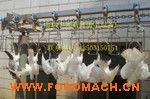 2.采用不銹鋼T型軌道.行走小輪采用尼龍材質(zhì)制作.對電擊暈、宰殺、瀝血、脫毛、凈膛、清洗、預冷、分割、包裝等工序?qū)崿F(xiàn)全程流水線加工。