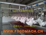 2.采用不銹鋼T型軌道.行走小輪采用尼龍材質(zhì)制作.對電擊暈、宰殺、瀝血、脫毛、凈膛、清洗、預(yù)冷、分割、包裝等工序?qū)崿F(xiàn)全程流水線加工。