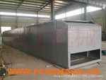 是將物料均勻地平鋪在網(wǎng)帶上,網(wǎng)帶采用12-60目的鋼絲網(wǎng)帶,由傳動(dòng)裝置拖動(dòng)在干燥機(jī)內(nèi)往返移動(dòng),熱風(fēng)在物料間穿流而過(guò),水蒸氣從排濕孔中排出,從而達(dá)到干燥的目的,箱體長(zhǎng)度由標(biāo)準(zhǔn)段組合而成,為了節(jié)約場(chǎng)地,可將烘干機(jī)制成多層式,常見(jiàn)的有二室三層、二室五層、長(zhǎng)度6-40m,有效寬度0.6-3.0m。